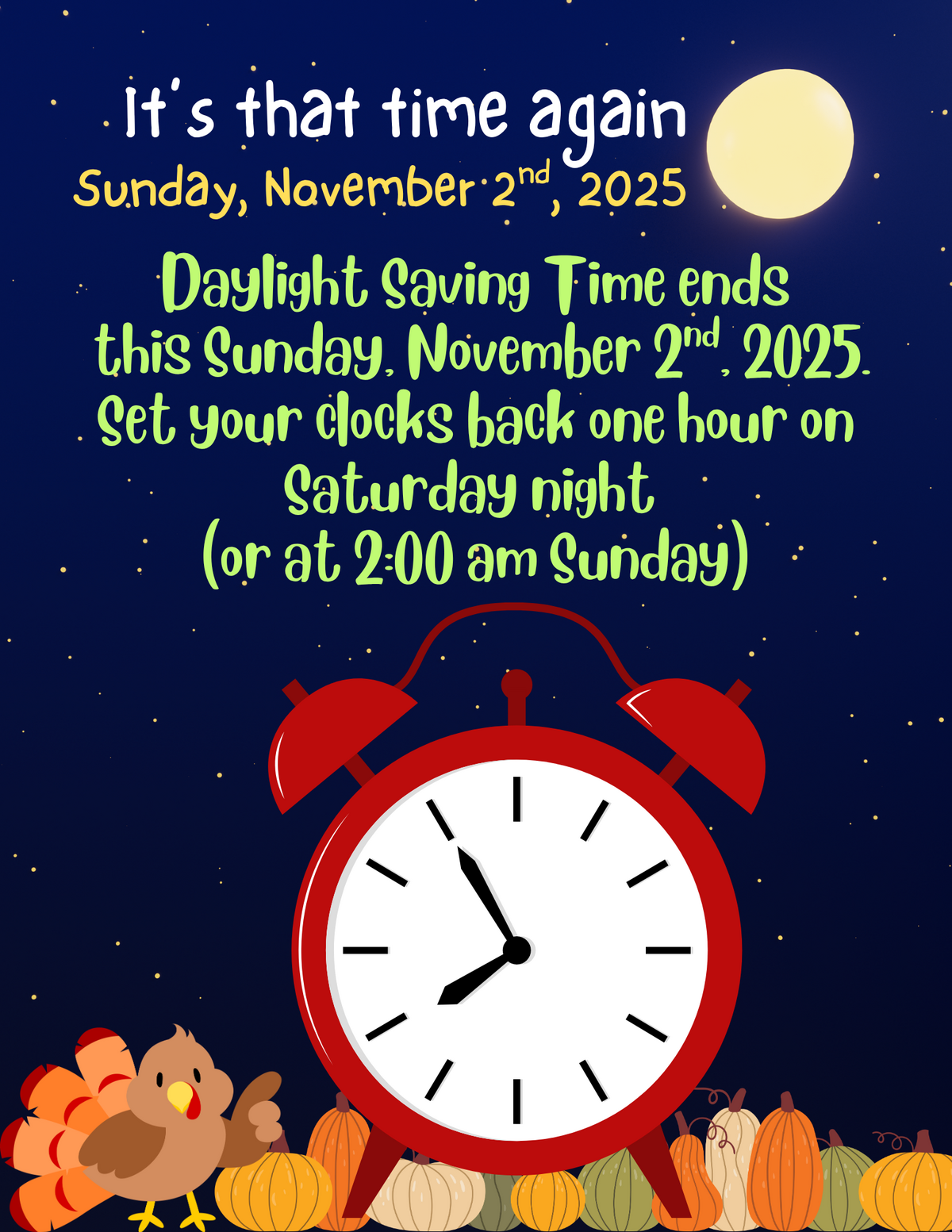 Its that time again! Sunday, November 2nd, 2025: Daylight Saving Time